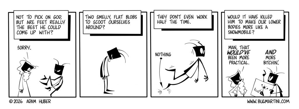 The original art is available on a first come first served basis. It is drawn on Strathmore 300 Series Bristol Board and is inked with Faber Castell pens. The board measures approximately 5.5″ x 14″. The comic itself measures around 4″ x 13″. Each piece comes with a signed letter about the genesis of that particular strip or an explanation of why I drew TIE fighters on the back.